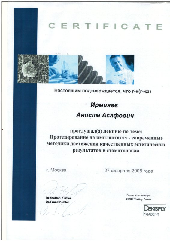 Преимущества: Имплант ставила у Анисима Асафовича. Отличный врач, сделал аккуратно и с гарантией. Имплант зуба быстро прижился.